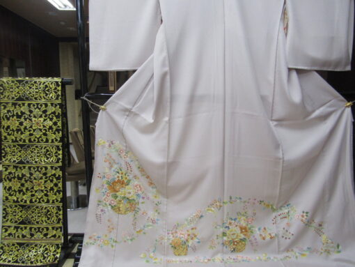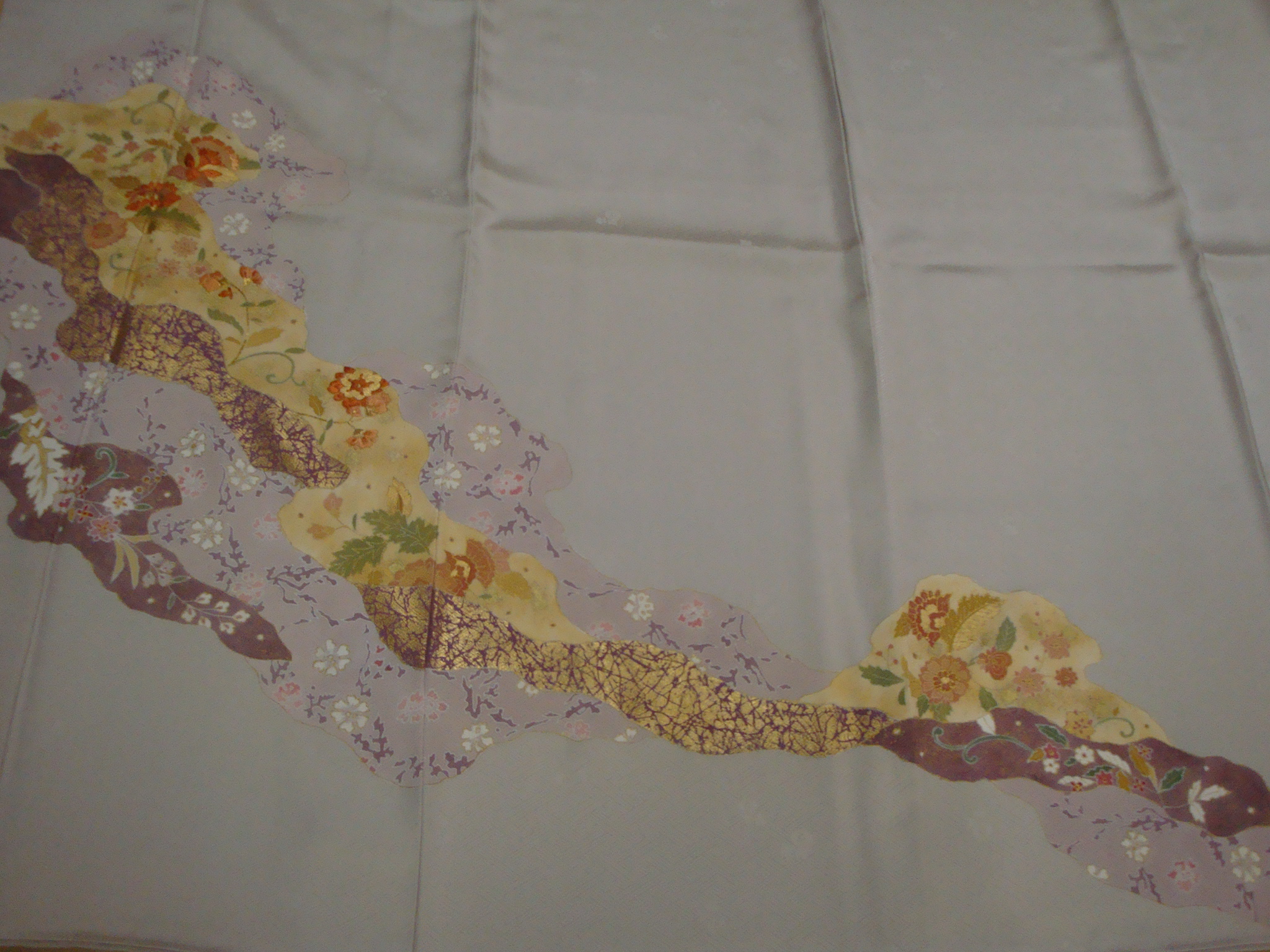 だが、特別な時に装う品物だけに、良質なあしらいが施されているものも多く、これを使わないまま寝かせておくと言うのは、何とも勿体ない。そこでバイク呉服屋は、色留袖に何とか陽の目を見てもらおうと、自分なりの方策を考えてみたので、これからそれをお話してみる。なお、話の間には、うちで扱ってきた上質な色留袖の画像を挿し入れるので、その模様や精緻なあしらいも楽しんで頂きたい。
