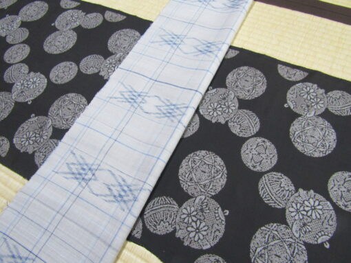 (鈴模様 割込み絣・泥大島紬  二重結び菱文 ユウナ染・久米島紬帯)