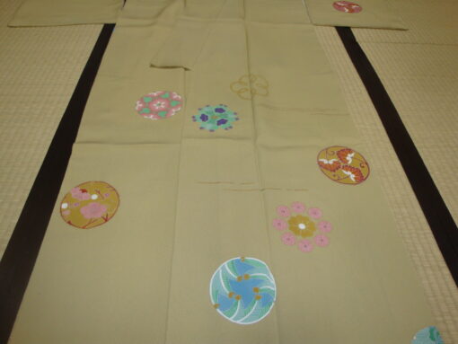 (芥子色地 和文花の丸と正倉院花の丸併用 友禅訪問着・品川恭子)