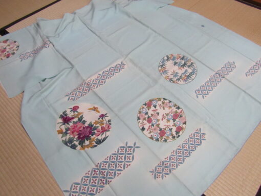 (空色地 四季花の丸に七宝文 加賀友禅訪問着・能川光陽)