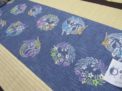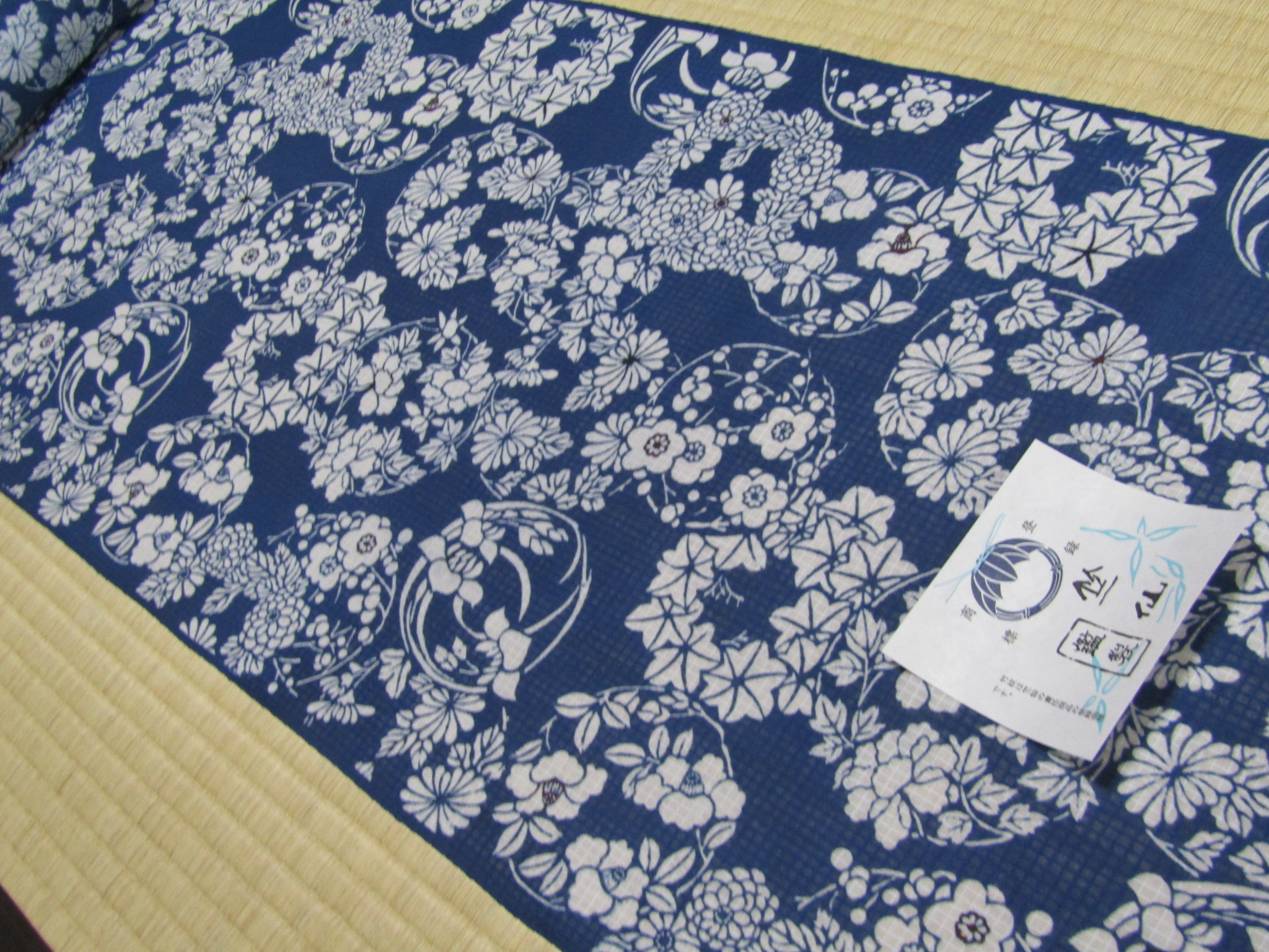 (藍色地 花の丸文様 綿紬浴衣・竺仙)