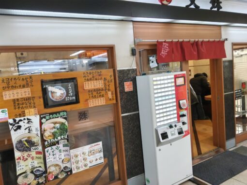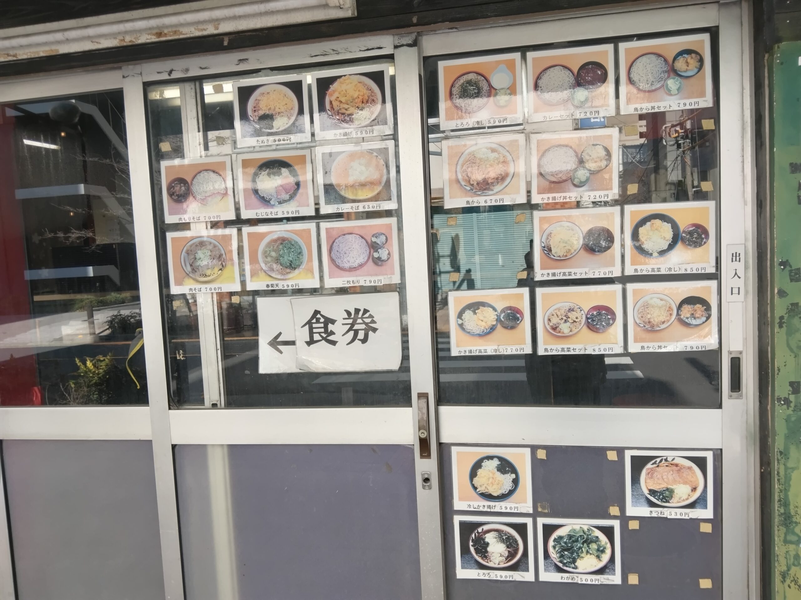 改札を出てすぐ右側に入り口があり、券売機で食券を買って、中で渡す方式。かけそば380円、冷やし(もり)440円。天ぷらはあまり種類が多くなく、かき揚げやなすが100円台で、えびだけが240円。ごはん物はカレーとおにぎり、いなり。どれもほぼワンコインで食べられる、良心的な価格。