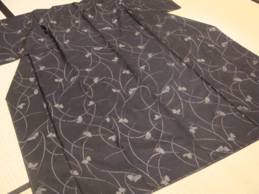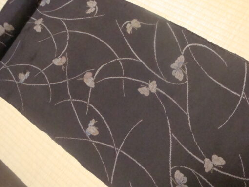 (露芝に蝶模様・泥大島キモノ 平田絹織物)